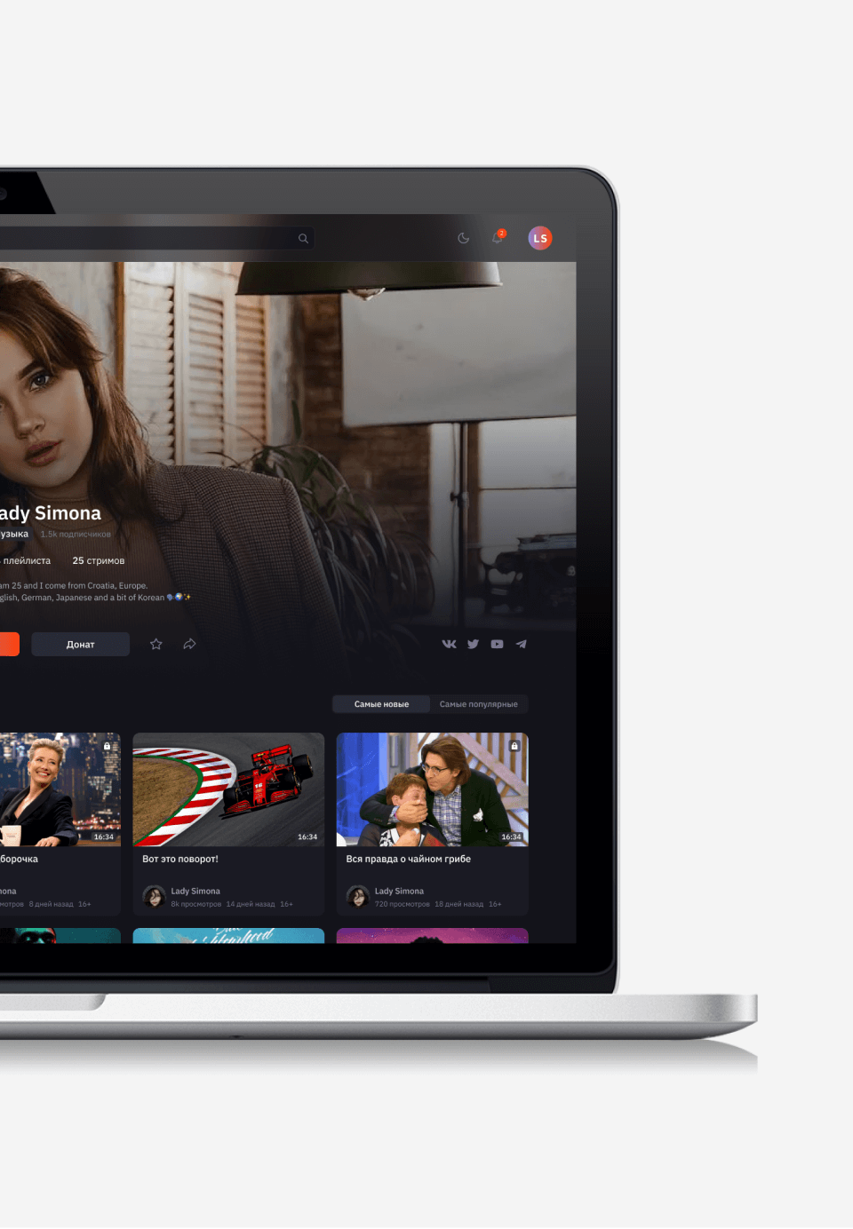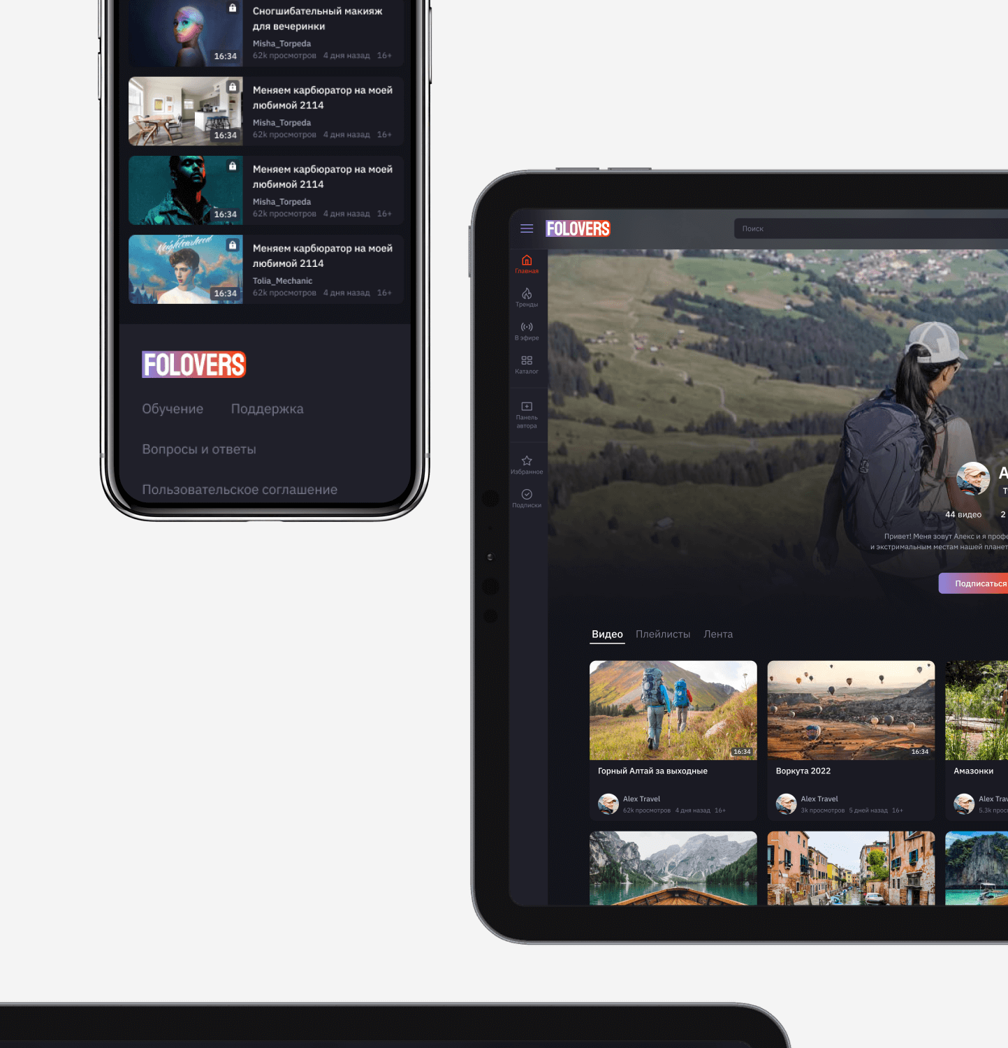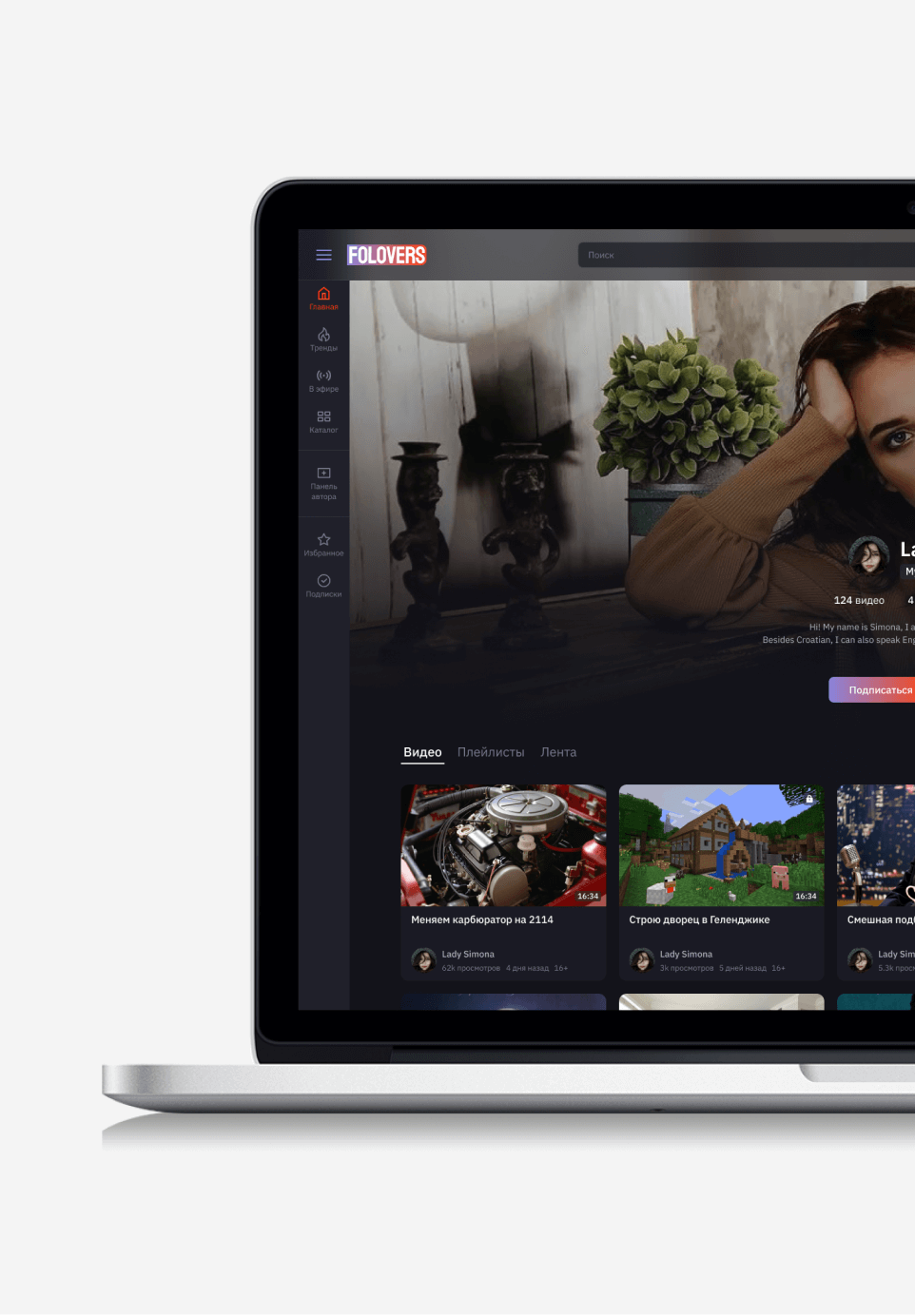 Together with my Art-director we created a service from scratch, conducting an analysis of YouTube, Twitch, Vimeo, and other video hosting platforms. We identified users' needs and expectations and identified key features. We created wireframes and developed a visual style that reflects the brand and appeals to the audience. We carefully designed functional elements and improved interactions with videos, comments, and subscriptions.