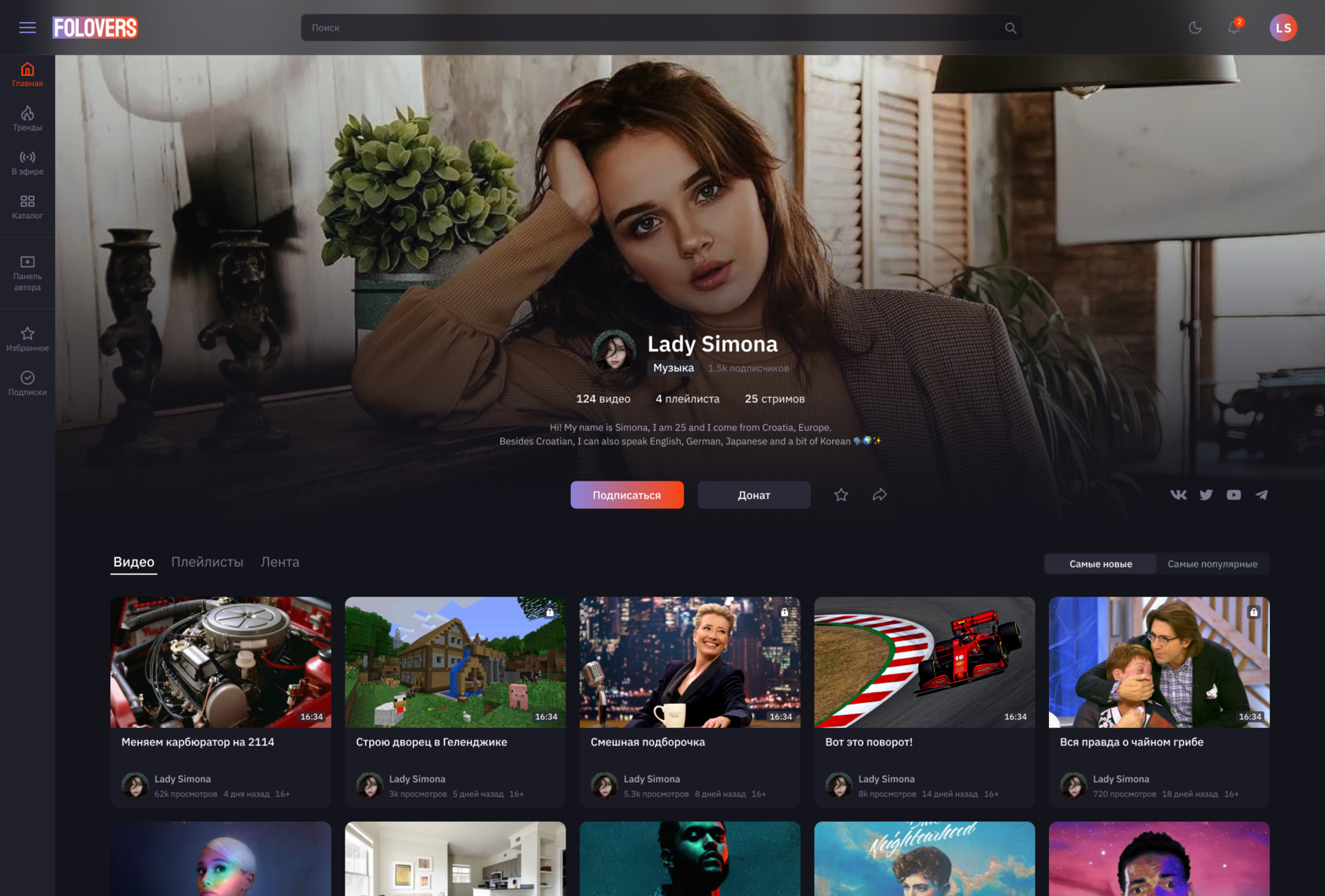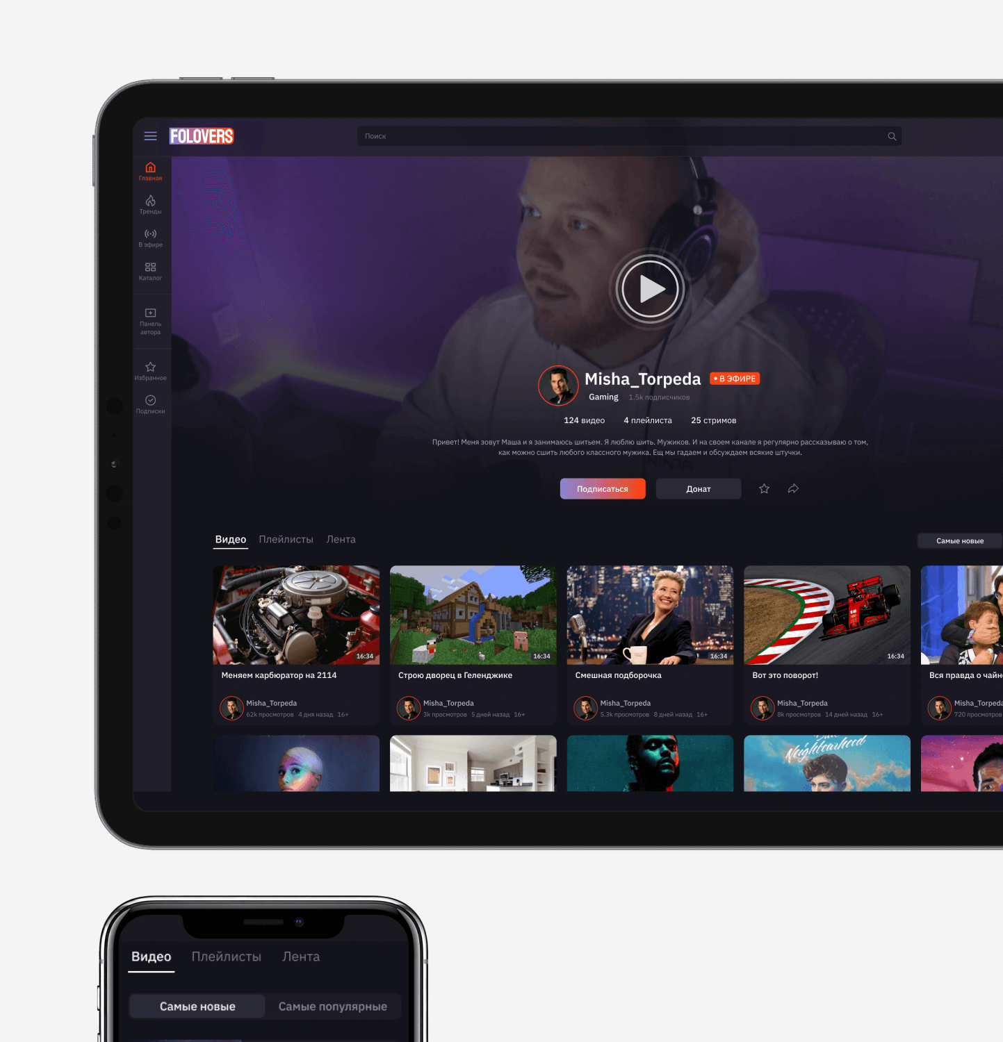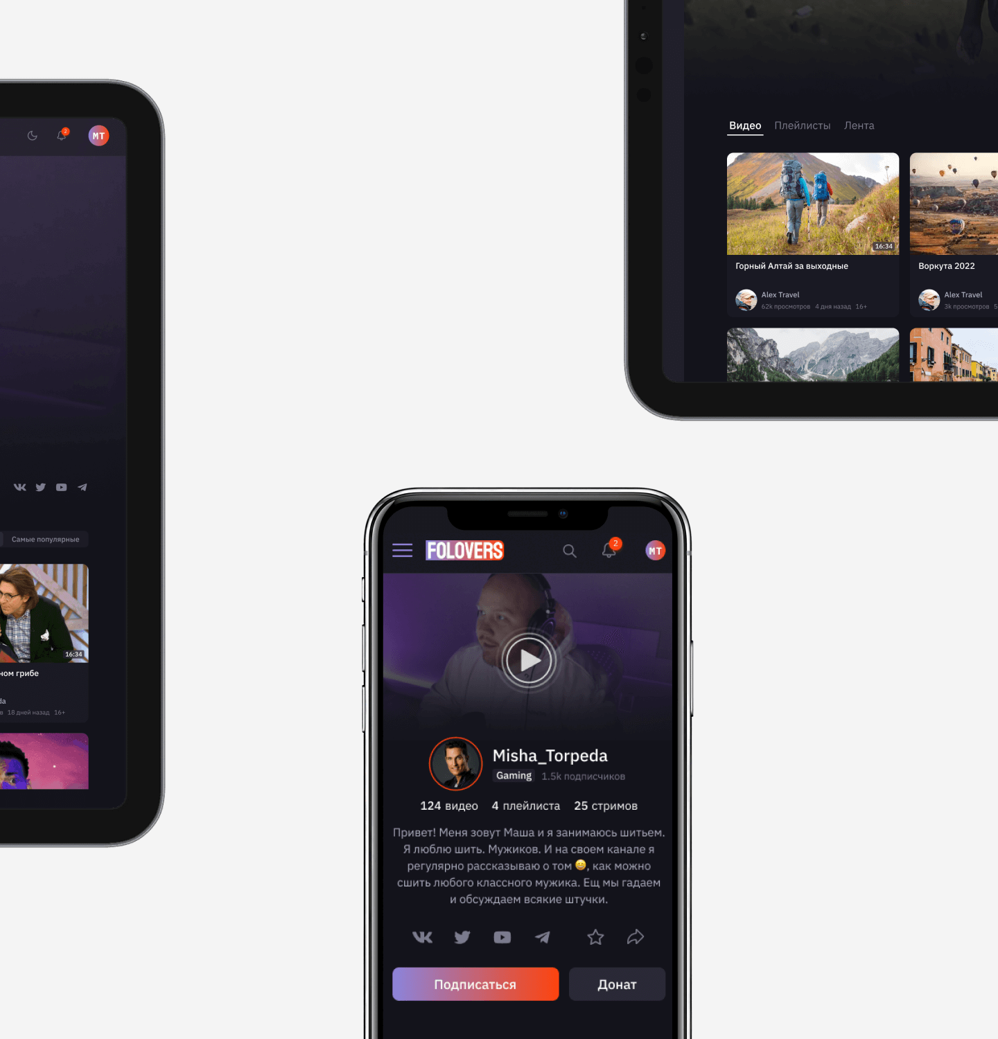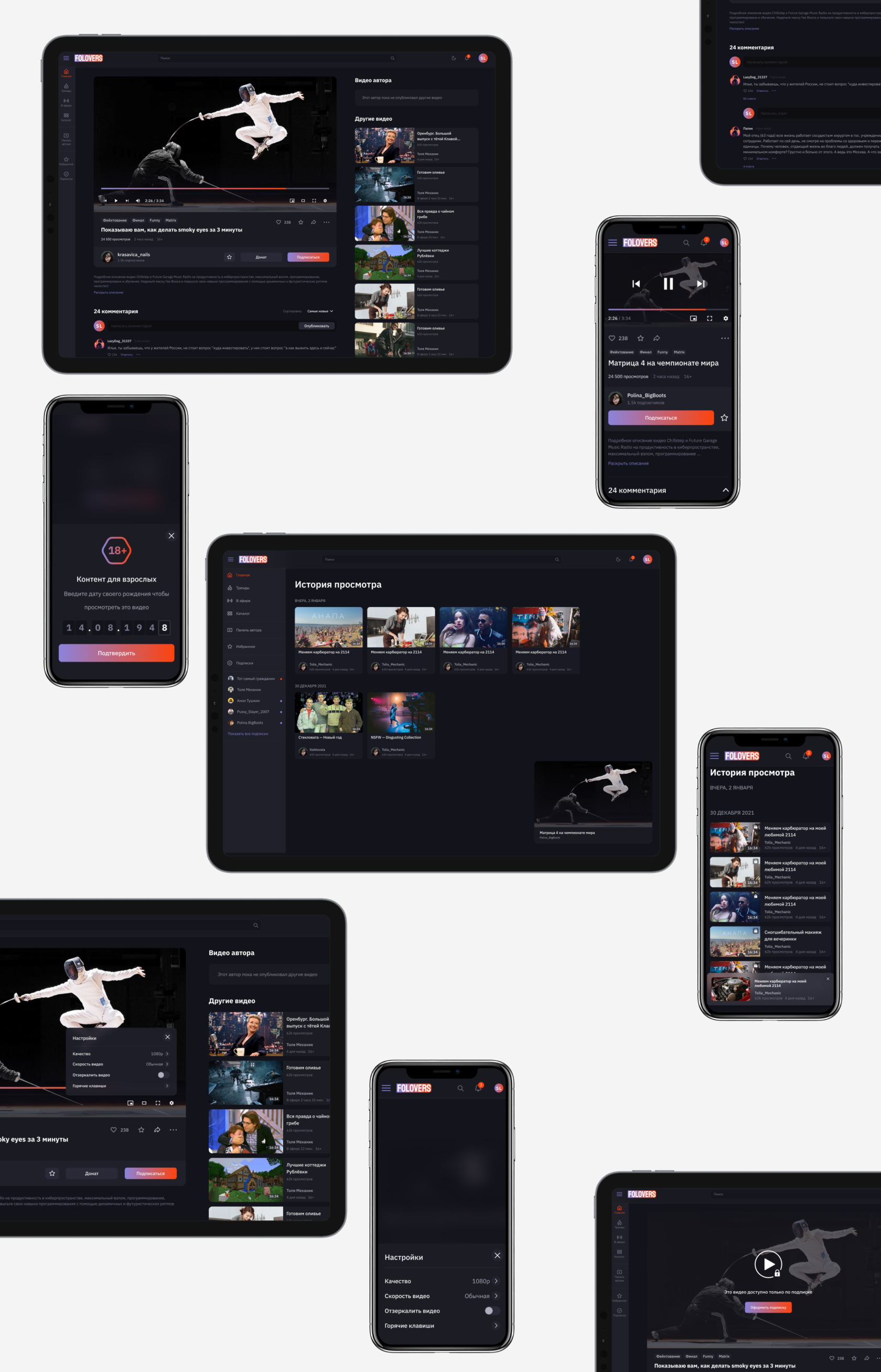 Together with my Art-director we created a service from scratch, conducting an analysis of YouTube, Twitch, Vimeo, and other video hosting platforms. We identified users' needs and expectations and identified key features. We created wireframes and developed a visual style that reflects the brand and appeals to the audience. We carefully designed functional elements and improved interactions with videos, comments, and subscriptions.